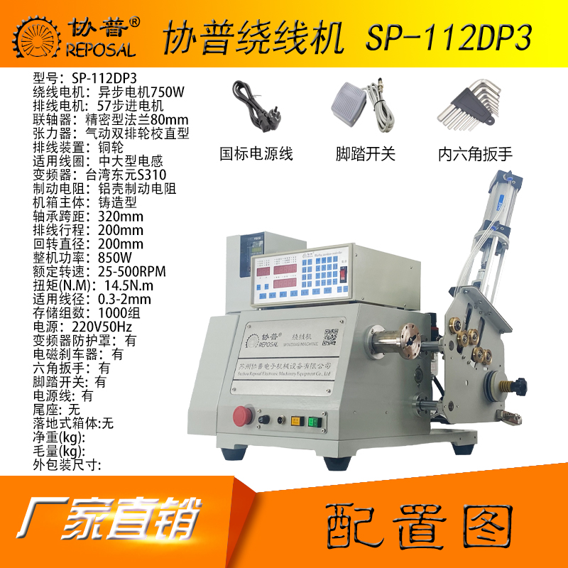 SP-112DP3 is similar to SP-112DP1, the main difference is that its tensioner adopts pneumatic rebound, and the manufacturability is better. It is suitable for medium-sized coils, and has higher requirements for the quality of the wire, and reduces the dependence on manual proficiency to a certain extent, but the main body of the winding machine adopts an integral casting design, and SP-112DP1 has excellent process rigidity and stability compared with it, but the influence of the pneumatic rebound mechanism, so the applicable enameled wire range is mainly between 0.6-1.5mm.