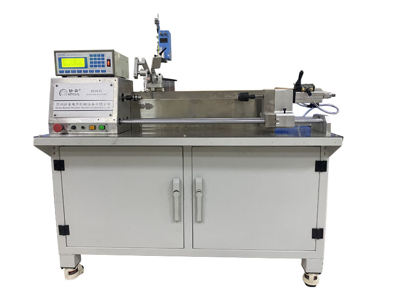 Flexible Rogowski coil winding machine for targeted development of products, using high precision winding machine controller, the front and rear clamping mechanism synchronous operation and clamping mode is fast and stable, according to the characteristics of Roche coil core elongation is high, while maintaining stable prestretch, winding and wiring motor are high precision AC servo motor, in the tension controller using precision tensioner.