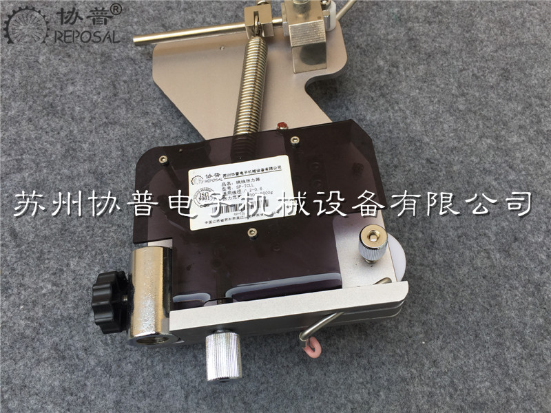 我們現在來了解一下張力器,一個穿線的過程。首先漆包線線過經張力器底部的陶瓷圈,然后再經過其上方的羊毛氈,羊毛氈的夾緊的程度可以調節,其方式是通過張力器的另外一側的旋鈕,